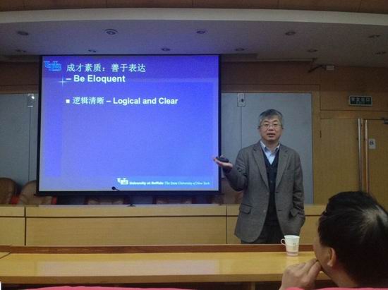 2014年12月6日上午,应英国上市365官网邀请,纽约州立大学布法罗分校陈长汶教授在学术会议中心小报告厅做了题为“漫谈研究型人才的成才素质”的精彩报告。本次报告由365官网“黄山学者特聘教授”汪萌教授主持,来自本学院和其他学院老师与学生踊跃参与。