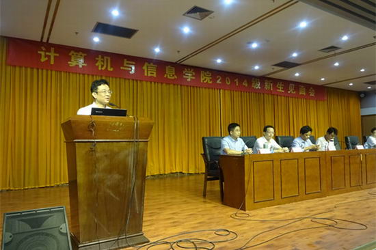 会议伊始,杨学志副院长首先代表学院向全体2014级新生致欢迎词,并从学院概况、师资队伍、教学科研、学生工作等方面介绍了学院的基本情况。
