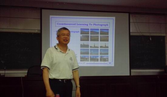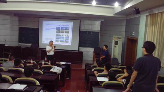 报告以多媒体推荐为研究着眼点,首先展示了多媒体推荐方法与技术的发展历程;进而指出在移动社交多媒体蓬勃发展的背景下,多媒体推荐在研究内容、研究思路与方法等方面所面临的机遇与新挑战;最后,陈教授以基于群智的移动设备智能摄影推荐系统为实例,介绍了其领导的研究团队在智能媒体推荐方向上所取得的成果。报告引起了在座师生的浓厚兴趣,大家分别就研究思路启发、核心技术拓展、工业化应用等方面与陈教授开展了深入广泛的探讨。