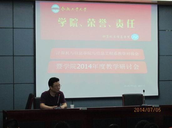 英国上市365官网与信息工程系教学对接会暨学院2014年度教学研讨会7月5日在英国上市365官网宣城校区召开,会议主题分为“本科教学专场”和“研究生教学专场”重点讨论如何提升本科教学、研究生培养质量。校领导朱大勇副校长、刘晓平副校长、李廉教授出席会议,学院领导班子成员、各系主任、所长、教师代表、学院督导组成员和辅导员等参加会议。