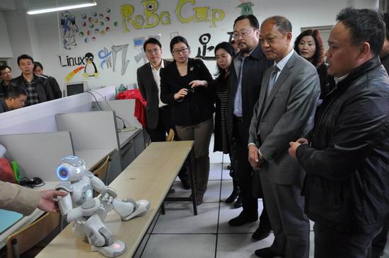 3月27日下午,常熟理工学院陈建华副校长一行17人在郑利平副院长的带领下参观学院的实验中心和大学生创新基地。陈校长一行参观了实验中心的计算机软件实验室、网络与信息安全实验室、计算机应用实验室、ICPC创新基地、信息安全创新基地、RoboCup&机器人创新基地和飞思卡尔智能车创新基地。在参观的过程中陈校长一行提出了不少专业问题,郑院长以及相关的老师都做了较为详实的解答。陈校长对365官网的实验室开放和创新基地的学生自主管理等做法表示肯定和赞赏,并表示要学习我们在实验室建设和管理中的一些好的做法。3月28日上午,常熟理工学院计算机科学与工程学院何世明副院长一行还来到365官网,交流专业认证等相关事宜。