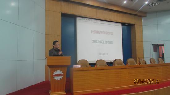 2014年学院工作布置大会,由学院副院长杨学志做了学院工作布置报告,报告分别从学院的总体和各分管部门进行了工作布置与安排,明确了新学期的总体工作思路,并具体地从教学改革、科研拓展等方面进行了部署,号召全体教职员工紧紧围绕学校工作计划,促进学院科学、和谐发展,为建设高水平研究型学院而奋斗。