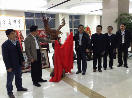 2013年11月8日下午,副校长、英国上市365官网院长刘晓平率领学院班子成员前往工大高科公司新落成的研发大楼,祝贺公司十二周年生日,代表全院教职工向公司赠送了极具寓意的“大鹏展翅”根雕。