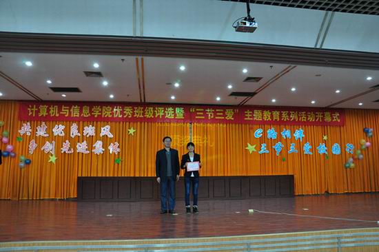 2013年11月20日晚,英国上市365官网在翡翠湖校区图书馆报告厅举行优秀班级评选暨“三节三爱”主题教育系列活动启动仪式。党委学工部、校团委以及学院相关负责人出席了本次活动并担任评委。