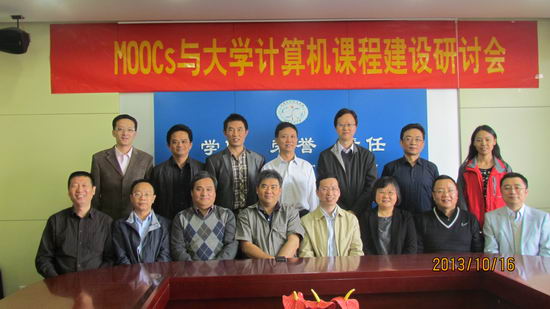 会议围绕基于MOOCs的教学模式改革、推进MOOCs资源建设以及教指委在MOOCs建设和运行中的作用等问题展开交流与研讨。北京大学张铭教授做了视频报告,主要介绍了她对MOOCs的理解和将《数据结构》作为第一门MOOCs课程的尝试;安宁教授,王挺教授,龚沛曾教授,翁恺教授,郑庆华教授,战德臣教授分别做了会议报告:安宁教授从美国实地考察MOOCs在学校教育的位置和作用,国内相关高校调研,以及《网络、群体与市场》课程在合肥工大的实践等方面对MOOCs建设和发展进行阐述,指出激励老师参与MOOCs建设和保证课程质量非常关键;王挺教授就MOOCs对高等教育的影响,大学计算机基础视频课程的建设,如何使用MOOCs资源提高课堂教学效果提出了自己的看法;同济大学龚沛曾教授介绍了同济大学《大学计算机》课程改革及MOOCs建设实践;浙江大学翁恺教授结合本校的小班教学和精研课程的教改实验提出了MOOCs的实践与思考;西安交通大学郑庆华教授针对MOOCs的三大联盟及其运作方式,MOOCs课程的教学设计,MOOCs的技术支持与服务模式提出了“借鉴MOOCs,打造自己的精品资源共享平台”的思想;哈尔滨工业大学战德臣教授讨论了MOOCs与大学计算机的关系,具体分析了大学计算机课程使用MOOCs的原因以及如何实施MOOCs。