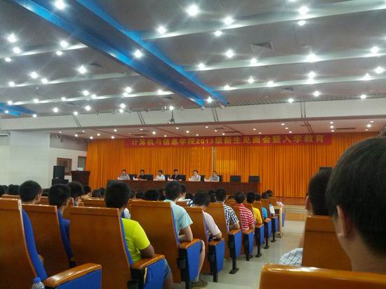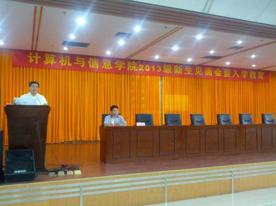 会议伊始,学院副院长杨学志代表学院为2013级新生致欢迎词,并从学院师资、科研、成果、文化等方面概括介绍了学院的总体情况。随后,通信系主任丁志中,计算机系主任路强以及学院实验中心副主任韦康分别就专业发展、前景方向、特色建设、师资队伍、教学计划、基地设置等具体情况向全体2013级新生进行全方面的讲解。最后,英国上市365官网副校长、学院院长刘晓平教授寄语2013级新生,鼓励全体同学在学习生活中变“被动”为“主动”,合理分配时间,多思考,勤学习。