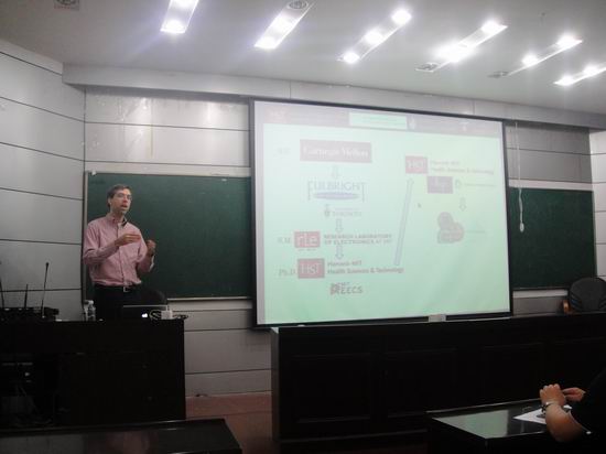 2013年6月15日上午9:00-11:00,哈佛大学医学院Gil Alterovitz教授在斛兵报告厅做了题为“国际生物信息学进展暨 去哈佛大学攻读生物信息学研究生:从合工大起步”的学术报告,介绍了他在生物信息学最前沿的研究成果和“iGEM”项目的相关工作,并对如何申请美国高校进行了介绍。报告会由英国上市365官网副院长杨学志教授主持,英国上市365官网众多师生参加了此次学术报告。Gil Alterovitz教授报告内容主要包括:(1)如何成功申请美国顶尖院校。他从多个方面介绍了如何为申请美国高校做准备,从GRE/TOEFL考试到简历书写、推荐信书写、英文学习等,提供了具体而有指导性的建议。(2)生物信息学的研究:Gil教授就他所在的生物信息学领域,详细介绍了他的一些研究思路和研究成果。(3)介绍了iGEM项目成立以来多年来取得的成果,并且对如何组建队伍参加iGEM大赛等问题做了详细介绍。Gil教授的报告深入浅出,报告内容引起了在座师生的浓厚兴趣。报告会后,参会师生分别就自己感兴趣的问题与Gil教授进行了交流互动,Gil针对问题做了详细的回答,报告会在热烈的掌声中结束。