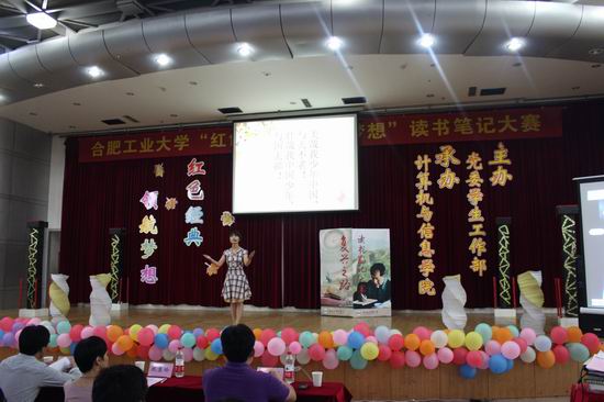 此次读书笔记大赛由党委学工部主办,365官网承办,大赛面向全校,历时两个月,由读书笔记大赛和书香微博大赛两部分构成。共收到来自全校十五个学院的八十余份读书笔记,五千多条书香微博。通过初赛、复赛,共遴选11份优秀作品进入读书笔记大赛决赛,10名同学的读书微博进入书香微博决赛。决赛中,各参赛选手通过“微”再现、“梦翔书海”演说两个环节进行个人读书风采秀,展示自己在阅读《复兴之路》过程中的见解与感悟,并结合自身实际阐述自己对中国梦的思索和追逐。大赛设有微博墙,选手与现场观众可以进行现场互动,共同畅想中国复兴之路。与此同时,在此次决赛中,以宣传片形式展示365官网开展的“梦翔计算机”读书月系列活动,并编辑读书月活动简报。