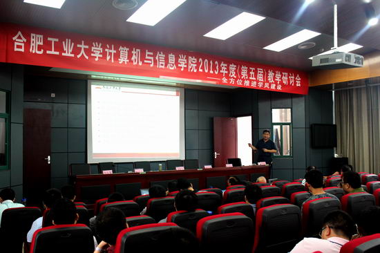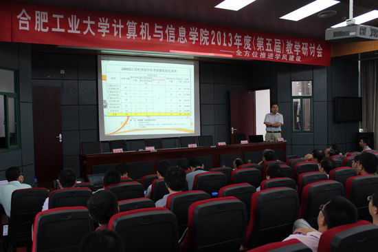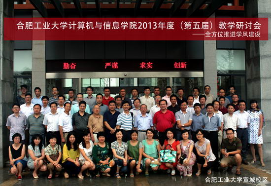 2013年7月6日至7日,英国上市365官网在我校宣城校区召开了2013年度(第五届)教学研讨会,会议主题为“全方位推进学风建设”。本科教学专场主要围绕“加强课程组建设-迎接宣城校区的教学任务”、“提升毕业设计质量管理-培养合格大学生”、“落实本科生导师制-提高培养质量”三个方面展开;研究生教学专场主要围绕“研究生课程设置修订”、“研究生培养相关规则的修订”、“提高研究生招生及培养质量的措施”、“计算机科学与技术专业自主命题”展开。副校长刘晓平、宣城校区管委会副主任胡学钢、原副校长韩江洪、院党委书记蒋建国、副书记何庆领、副院长杨学志、副院长郑利平、院长助理王伟、各系所、中心负责人、责任教授、学院教学督导组成员、教师代表、教学行政办公室人员共60余人参加了本次会议。