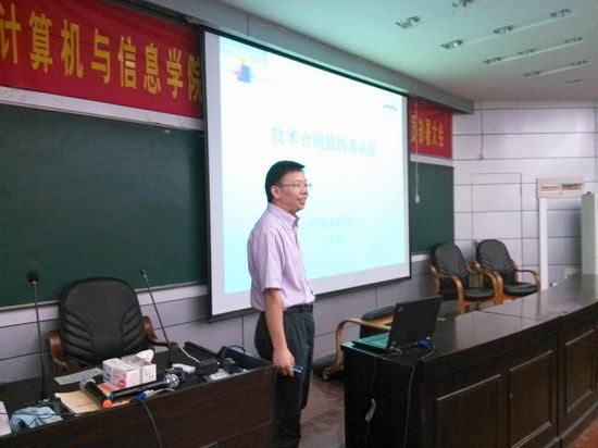 方焱松以“技术合同签约及认定”为题,从“技术合同签订渠道及信息”、“技术合同签约及要点”、“技术合同认定及免税申请”、“专利技术转让合同类型及注意要点”四个方面对如何规避合同风险、有效维护学校利益和合理享受国家优惠政策等事项进行了详细介绍。