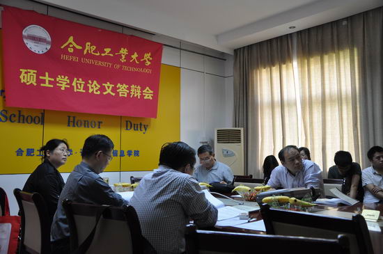 本次集中答辩试点了两个二级学科(计算机软件与理论、通信与信息系统),共计35名研究生参加。集中答辩由学院统一聘请评委,35名研究生分为6个小组同时进行。答辩进行期间,院集中答辩工作组组长杨学志副院长依次到每个答辩分会场向各位评委介绍此次集中答辩的情况,来自相关专业的老师和研究生也旁听了答辩会。6个分组的答辩工作于晚19:00全部顺利结束。此次集中答辩为加强研究生培养过程质量管理、促进研究生论文质量提高、规范研究生答辩工作流程起到了非常积极的作用。下面是图片报道: