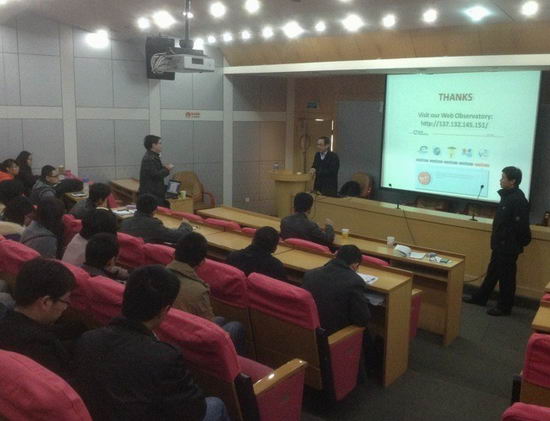应英国上市365官网邀请,2013年3月26日上午,新加坡国立大学教授蔡达城在校学术会议中心报告厅做了题为“Live Social Observatory: A platform for social media research”的学术报告。报告会由蒋建国书记主持,杨学志副院长、信号所与软件所教师以及学院研究生、本科生参加了报告会。