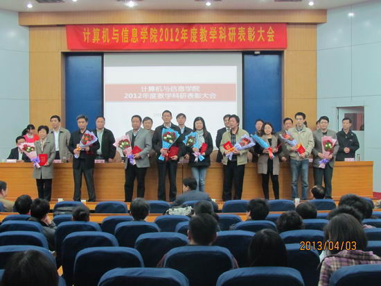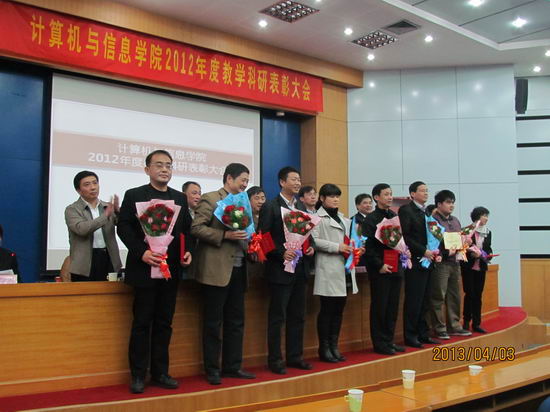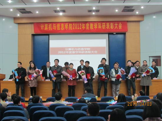 大会对2012年度学生评教中排序前二十名的个人授予了“2012年度学生评教个人优秀奖”;对2012年度科研项目纵向到账经费50万以上、横向到账经费100万以上的个人授予了“2012年度承担科研项目个人优秀奖”。会上,吴玉程副校长发表了讲话,向受到表彰的31位教师表示祝贺,对学院2012年度工作给予了高度的评价,并勉励大家科研再上台阶,早日将365官网建设成研究型高水平学院。