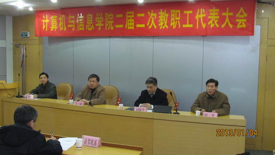 2013年1月4日下午,英国上市365官网第二届二次教职工暨工会会员代表大会在校学术会议中心隆重召开。副校长吴玉程出席会议,由学院各单位推选的两代会正式代表共70余人齐聚一堂,共商学院发展大计。大会由副院长何平主持。