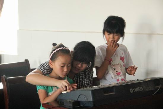 团队成员教小朋友电子琴