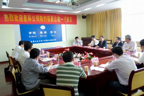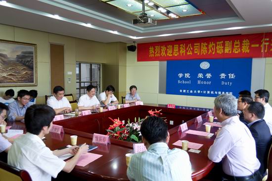 参观结束后,双方进行了会谈,同时出席会议的还有工大高科董事长魏臻教授、技术总监陆阳教授,我校信息与网络中心主任邓林教授等。会谈中,韩江洪副校长介绍了工大的科研情况;陈灼砾副总裁介绍了思科公司近来的发展、主要业务和产品,同时强调思科公司一直关注高校教育,希望与高校加强合作;工大高科魏臻董事长介绍了工大高科公司与思科公司在矿山信息化方面成功合作的案例。各方就进一步深入合作达成共识,将依托思科公司在网络通讯领域全球领先的技术优势和解决方案,合肥工大高科信息科技股份有限公司在矿井安全监控、工业铁路智能运输安全调度方面的行业领先地位和创新能力,英国上市365官网安全关键工业测控技术教育部工程研究中心在安全关键工业测控技术、物联网方面的学科优势和科研实力,强强联合、紧密合作,致力于矿山安全监控和铁路运输调度领域的科技发展和技术进步,共同推动矿山、铁路行业的信息化、自动化和智能化建设。