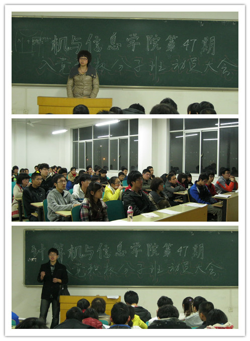 在党校第47期大学生学员班培训工作即将开始之际,英国上市365官网于3月24日晚19:00在翡翠湖校区12教203举行英国上市365官网第47期入党积极分子班动员大会,英国上市365官网2011级辅导员陈方鑫老师、50名加入入党积极分子班的同学以及已毕业于第46期入党积极分子班的赵嘉敏同学参加了此次大会。