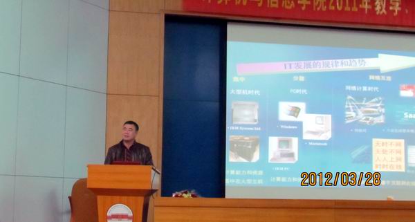 应英国上市365官网邀请,2012年3月29日下午15:30 - 17:00,国家教学名师、武汉大学何炎祥教授在校学术会议中心一楼大报告厅做了题为“IT发展与创新人才培养的一点思考”的报告。报告由刘晓平院长主持,韩江洪副校长、教务部副教务长朱大勇教授、电子科学与应用物理学院院长梁华国教授、软件学院院长鲁昌华教授、计算机学院书记蒋建国等领导及相关的教师和学生出席了此次报告。