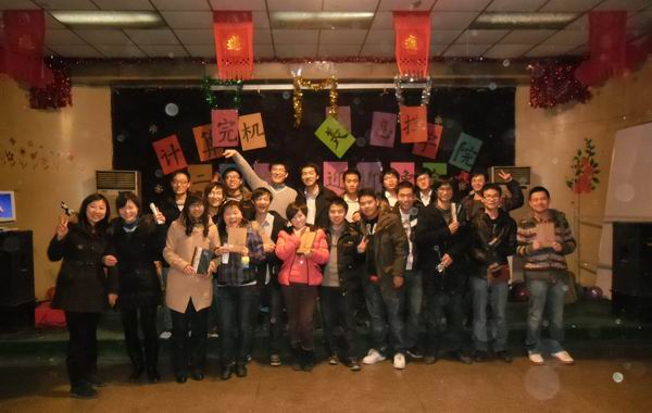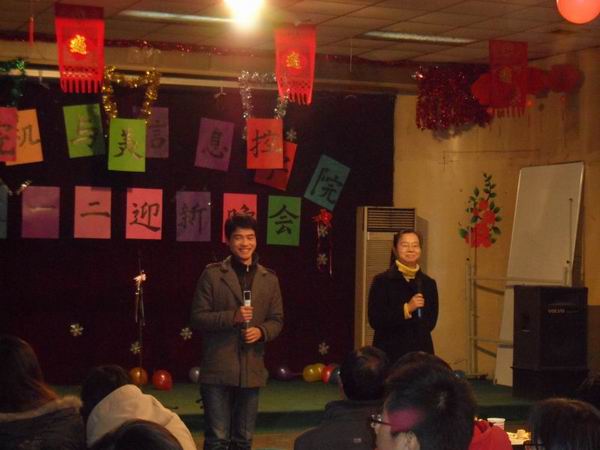 院党委书记蒋建国老师发表了新年的贺词,祝福我们在新的一年里有新的收获;吴挺老师宣布了365官网新一届研究生会以王鑫(女)为主席的骨干成员名单。在热烈的欢呼声中,蒋书记用一首歌-《在那桃花盛开的地方》来表达了我们对祖国的热爱。