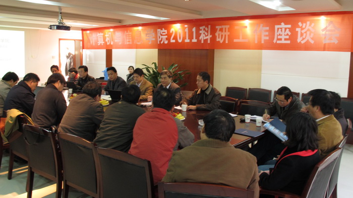 2011年12月17日下午,英国上市365官网科研工作2011座谈会于文达大厦举行,学院领导班子成员、系主任、科研工作者代表共20余人出席会议,会议由刘晓平院长主持,科研院长杨学志做主题发言,韩江洪副校长发表重要讲话。
