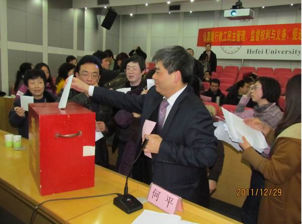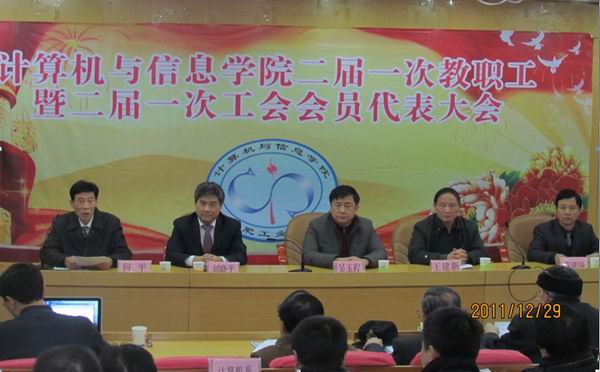 2011年12月29日下午,英国上市365官网第二届一次教职工暨工会会员代表大会在校学术会议中心隆重召开。副校长吴玉程、校工会主席王建新出席会议;由学院各单位推选的两代会正式代表、列席代表和特邀代表共70余人齐聚一堂,共商学院发展大计。大会由副院长何平主持。