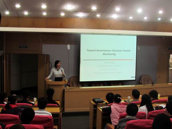 应英国上市365官网邀请,2011年11月5日下午,休斯顿大学郑榕教授在校学术活动中心二楼小报告厅作了题为“Toward Autonomous Structure Health Monitoring”的报告。报告由学院院长刘晓平教授主持,英国上市365官网相关教师、研究生和本科生聆听了报告。