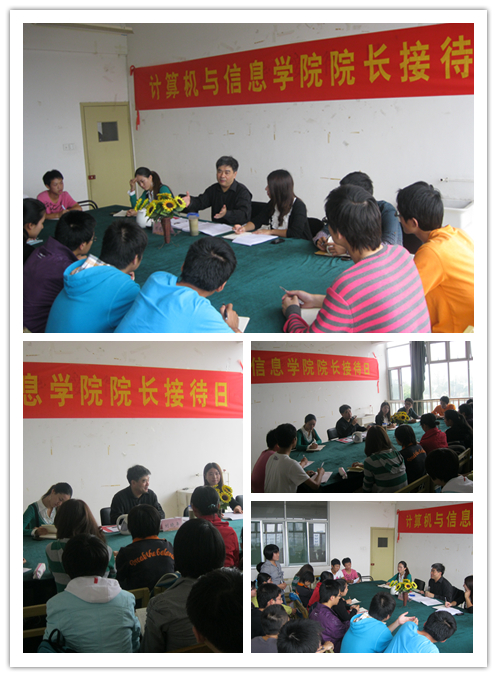 英国上市365官网于10月11日10:00—12:30在翡翠湖校区综合南楼307室举行了院长接待日,计算机、信息安全、电子工程、物联网、通信工程等专业的40余位学生代表参加了本次活动,刘晓平院长率一、二年级辅导员认真听取了同学们对课程学习、实验活动、业余生活等方面的报告,询问了上述活动中所遇到的困难以及学院在管理方面所存在的不足,同学们提问踊跃、与院长和辅导员互动不断,问题涉及大学生创新课题申报以及指导、程序设计上机安排、人文素质培养及名人报告会、精简学时之后的教学内容安排、民族地区学生的特殊政策等,最后院长强调了大学学习自主性、独立性,告诫大家学科知识和文化并重,认真对待学生评教,要求同学主动学习,对自己高标准、严要求。