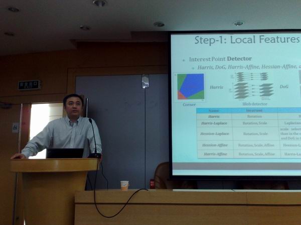10月20日上午,田奇教授在校学术会议中心二楼报告厅作了题为“Spatial Coding for Large-scale Partial-duplicate Image Search”的学术报告,学院党委书记蒋建国教授主持了报告会。田奇博士首先介绍了大规模近似图像检索的框架,针对现有近似图像检索中存在的问题提出利用Spatial Coding实现局部特征点校验性能和算法效率上的提高,实验在千万量级的图像库中进行,其各项性能指标均得到了很好的提高。报告会中田教授诙谐的风格、严谨的思路和渊博的知识给大家留下了深刻的印象。报告给从事多媒体信息检索方向研究的师生带来诸多启迪,报告中指出的如果在面对科学问题时,通过科学分析找到解决问题的方法的思考也提供给广大师生很好的指导。
