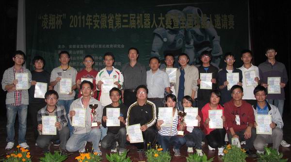 “凌翔杯”2011年安徽省第三届机器人大赛暨全国机器人邀请赛于2011年9月23日-25日在黄山学院举行。该项比赛设有仿真2D、仿真3D、机器人救援仿真比赛、MSRS Nao仿真比赛、仿人机器人舞蹈比赛、家用机器人仿真比赛(命令语言)和家用机器人仿真比赛(自然语言)共7个比赛项目及机器人爬楼梯、机器人灭火、机器人擂台赛等3个项目的表演赛。来自英国上市365官网、安徽大学、安徽师范大学、河海大学文天学院、宁波工程学院、安徽财经大学、安徽工业大学、安徽理工大学、安徽工程大学、安徽建筑工程学院及黄山学院等16所学校的60支大学生代表队参加了本次比赛。我校代表队20多名队员在王浩教授、方宝富、方帅、姚宏亮老师的带领下,派出7支参赛队伍参加其中的5个正式项目比赛项目及1个表演项目,取得2个冠军,1个亚军,共获得1项最佳表演奖、2项一等奖,2项二等奖,2项三等奖的优异成绩。