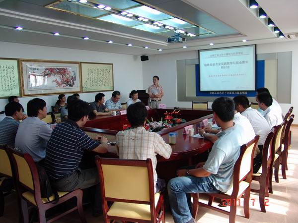 7月12日,英国上市365官网网络与信息安全研究所在校逸夫楼1207会议室举行了 “合工大英国上市365官网信息安全专业实践教学与就业需求研讨会”。英国上市365官网书记蒋建国教授、副院长郑利平副教授、校质量管理与评估办公室主任胡学刚教授、安徽省国家保密局和安全厅相关领导、北京西普科技有限公司技术总监、(北京)网御神州科技有限公司技术总监、上海卫士通网络安全有限公司总经理和总工程师、合肥龙旭网络技术有限公司总经理和技术总监、安徽聚星电子有限公司总经理和技术总监、网络与信息安全研究所老师参加了此次研讨会。