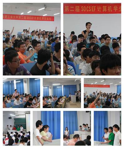 本次论坛在09级计算机科学与技术专业全体同学的共同努力下,2011年6月25日于翡翠湖校区的三教206教室成功举行,计算机软件与理论研究所和网络与信息安全研究所负责指导。英国上市365官网刘晓平院长,郑利平副院长,企业代表科大讯飞微软研究中心的程文正主任,合肥文康科技CTO金庆江博士,09级辅导员黄晨老师,计算机科学与技术系各研究所所长等参加了论坛 。