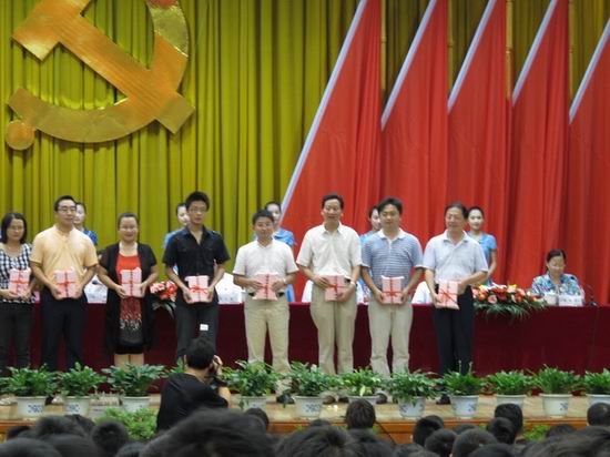 在举国上下热烈庆祝中国共产党90华诞之际,张效英书记代表校党委向全校党员及参加入党宣誓的新党员表达了亲切的问候与祝贺。徐枞巍校长宣读了合工大党组字『2011』54号表彰文件,365官网党委获得“先进基层党组织”称号;副书记、副院长何庆领同志获得“优秀党务工作者”称号;信号与信息处理研究所党支部获得“红旗党支部”称号;09级研究生张靖同学、信号与信息处理研究所徐小红老师获得“先进党员”称号; 09级辅导员张金伟老师获得“优秀德育工作者”称号;信号与信息研究所党支部和信息安全08-1班党支部获得“特色党支部立项活动三等奖” ,覆盖了此次表彰全部奖项。蒋建国书记代表“先进基层党组织”单位作了发言,介绍了365官网党委紧密结合学院实际,深入开展学习实践科学发展观和争先创优活动,积极提倡“快乐工作,事业养生,奉献社会,幸福生活”的理念,倡导把职业当成事业,把工作变成需求,把压力化为动力,尽心尽职做好本质工作,汇涓流而成江河,积跬步而致千里,在平凡的工作中实实在在的为学校、为社会作贡献。按照基层党组织“五个好”的要求,不断推动学院工作科学快速发展的情况。