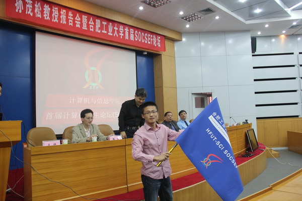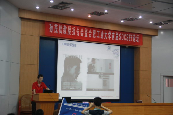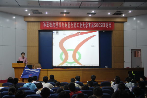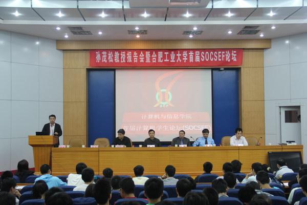 首届SOCSEF于5月27日上午8:00在校学术交流中心一楼大报告厅举行。英国上市365官网副校长洪天求教授、清华大学计算机系党委书记孙茂松教授、CCF YOCSEF合肥分论坛首任副主席合肥寰景公司总经理陈拥权、英国上市365官网蒋建国书记、刘晓平院长、何庆领副书记、郑利平副院长、王伟院长助理和路强所长等参加了论坛。整项活动由郑利平副院长主持,首先清华大学孙茂松教授向365官网计算机、信安专业08级本科生进行一场学术报告,作为本次论坛的特邀报告。然后计算机08-1班自主组织学生论坛,全体计算机、信安专业08级本科生参加讨论。