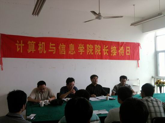 2011年6月3日上午十点,英国上市365官网院长接待日在翡翠湖校区综合楼307会议室举行,刘晓平院长、杨学志副院长、郑利平副院长、计算机软件与理论研究所邵堃所长及新区学生代表出席了接待日。