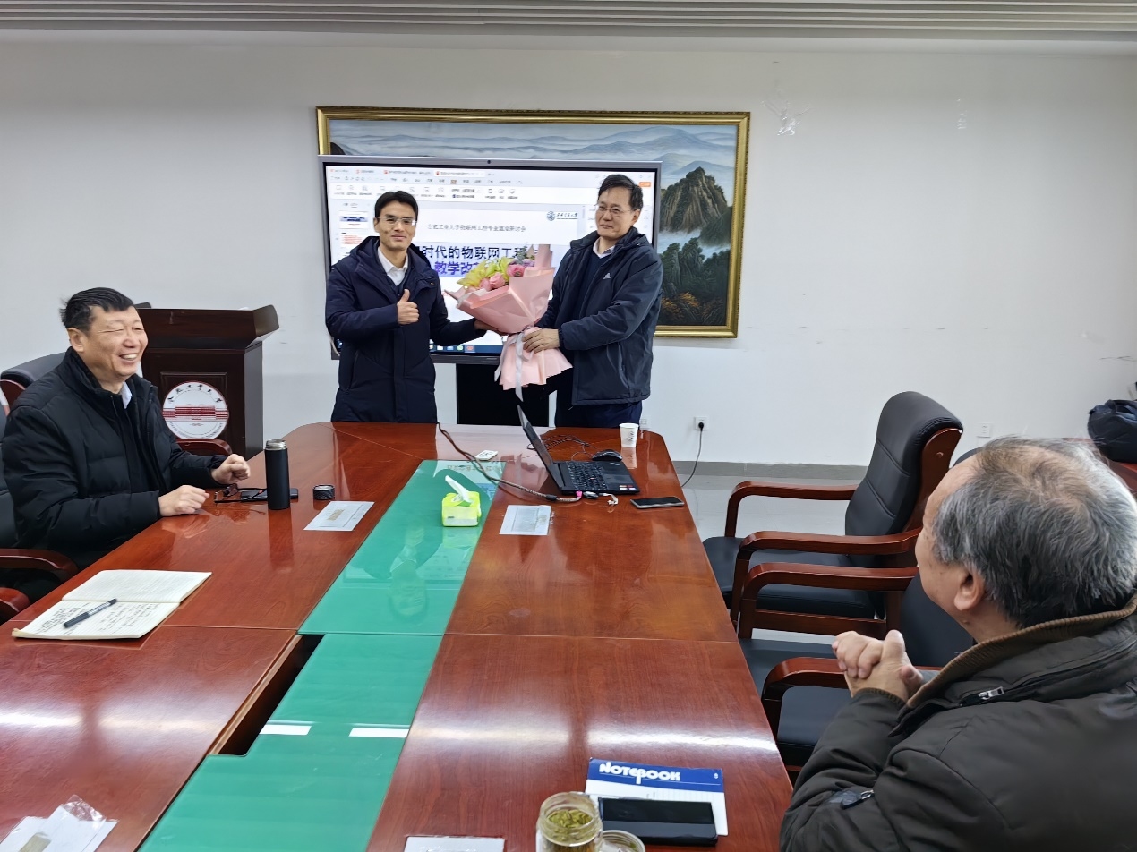 为了有效开展365官网物联网工程国家级一流本科专业质量与特色建设,迎接后续到来的工程教育认证,应学院邀请,2024年1月23日上午西安交通大学桂小林教授莅临365官网做“AI时代的物联网工程专业课程体系改革与探索”主题报告并交流指导,副院长夏娜教授、学院教指委副组长胡学钢教授、王浩教授出席。