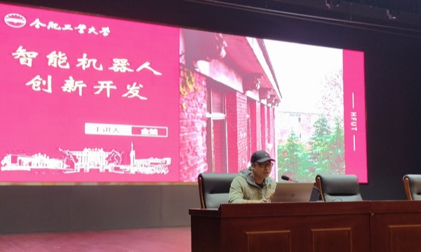在利辛县新能源学校,金兢老师为400余名学生(含机电科技学校50余名学生)做了“智能机器人创新开发”科普讲座,重点介绍了RoboMaster机甲大师对抗赛的情况,并现场播放了我校苍穹战队在2024年湖北站比赛中夺得季军的精彩录像,将会场气氛推向高潮,激发了同学们的广泛兴趣。