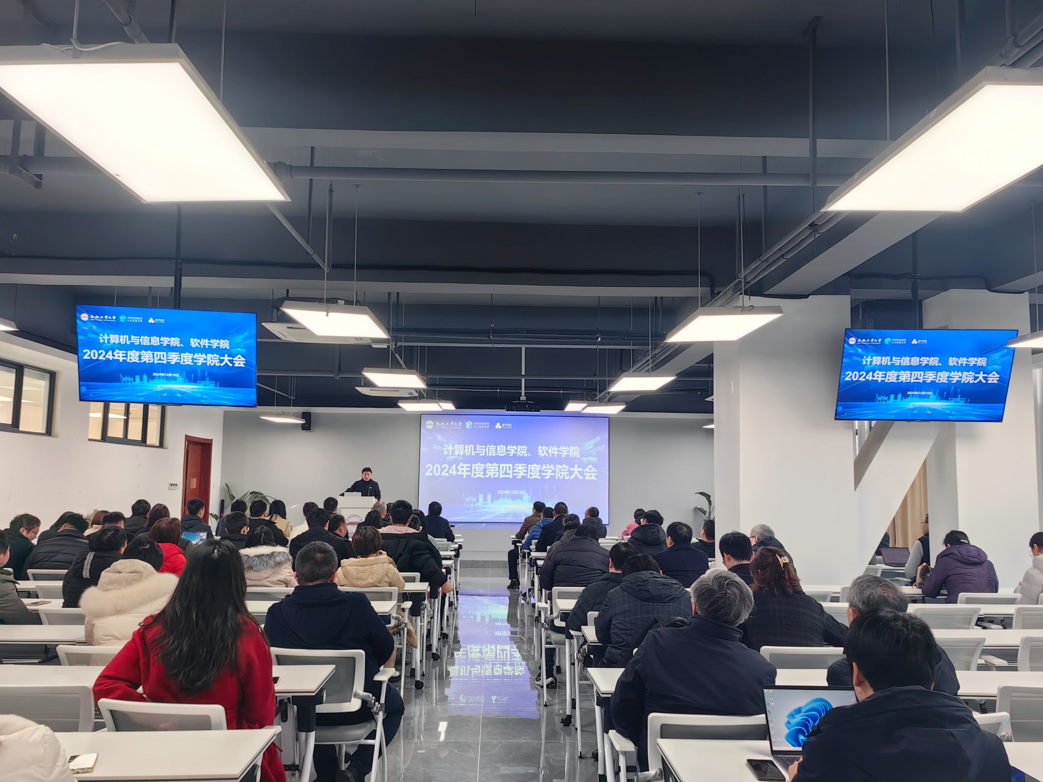 12月18 日下午,学院在科教楼B501召开第四季度全体教职工大会。学院领导班子成员及全体教职工参加会议。