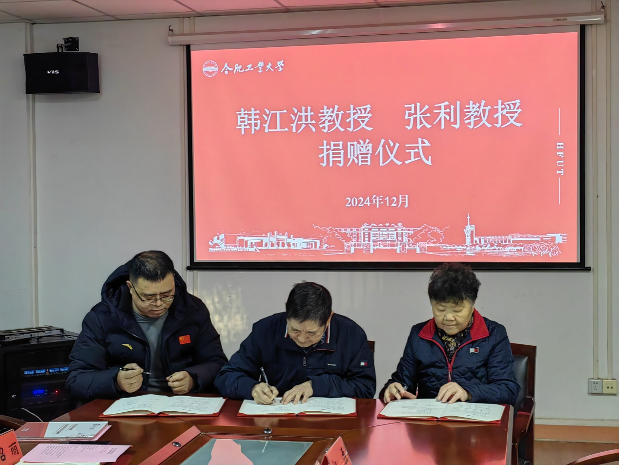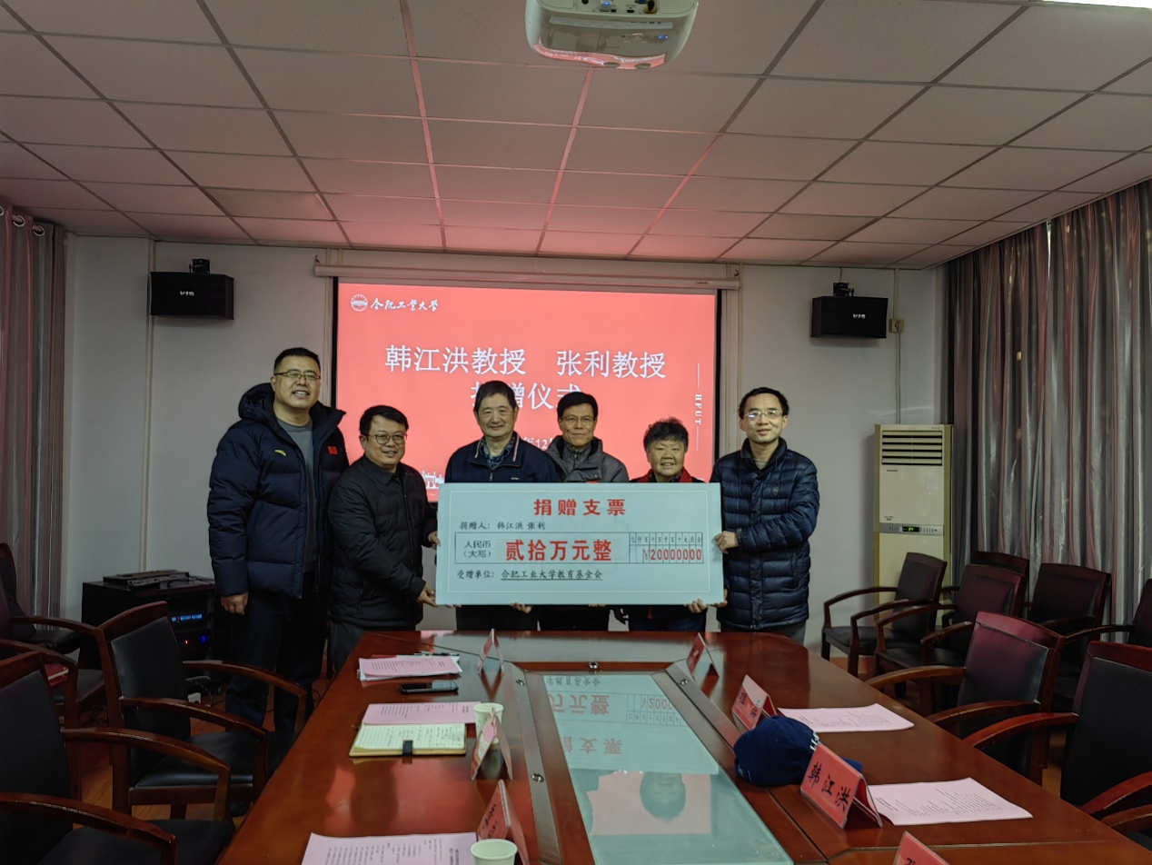 2024年12月20日,学校在教职工活动中心207会议室举行了一场意义非凡的捐赠仪式。365官网退休教授韩江洪老师与夫人机械学院退休教授张利老师为迎接建校八十周年,共同向学校教育基金会捐赠20万元人民币,以支持学校创新研究和实践的发展。