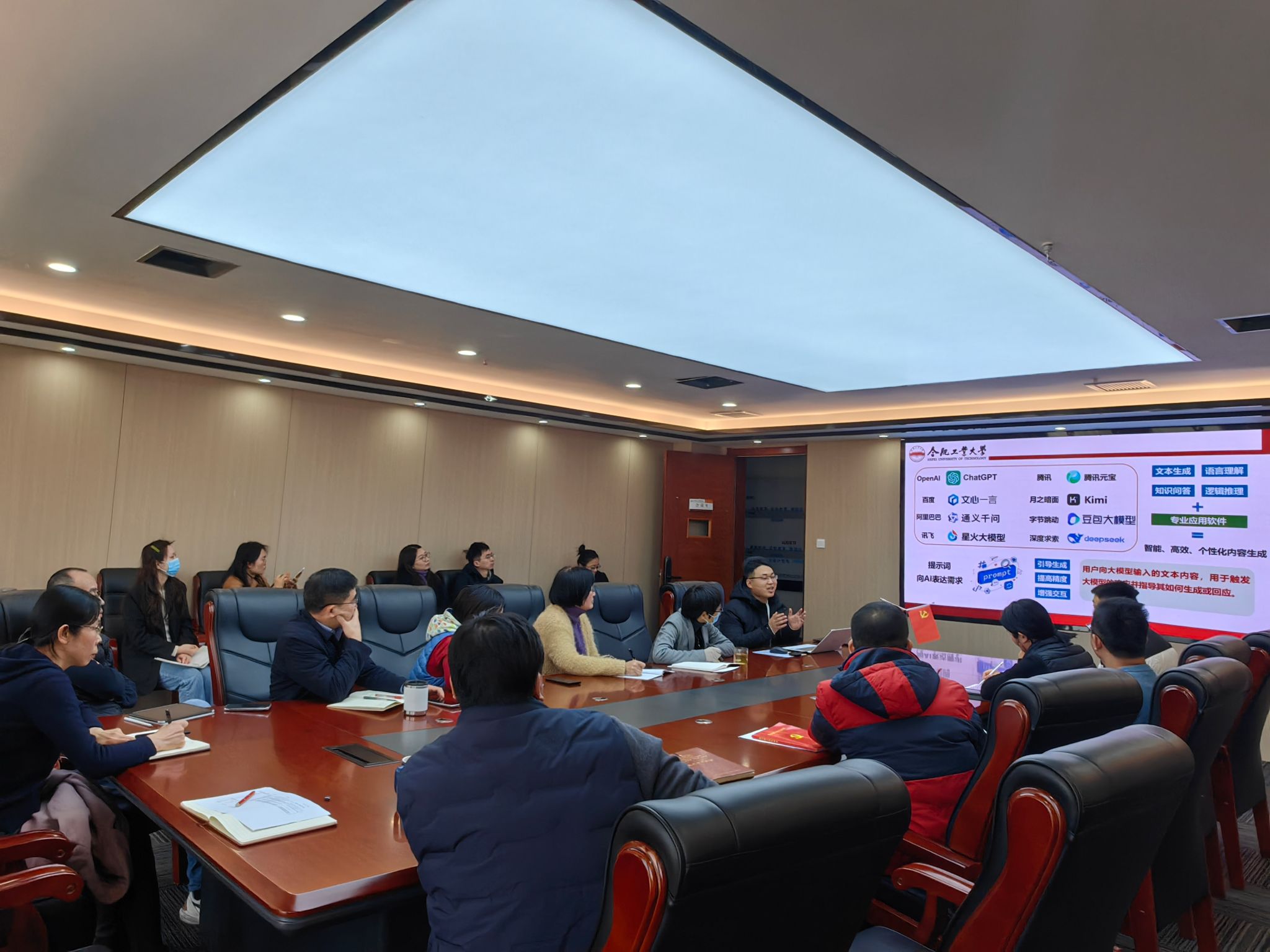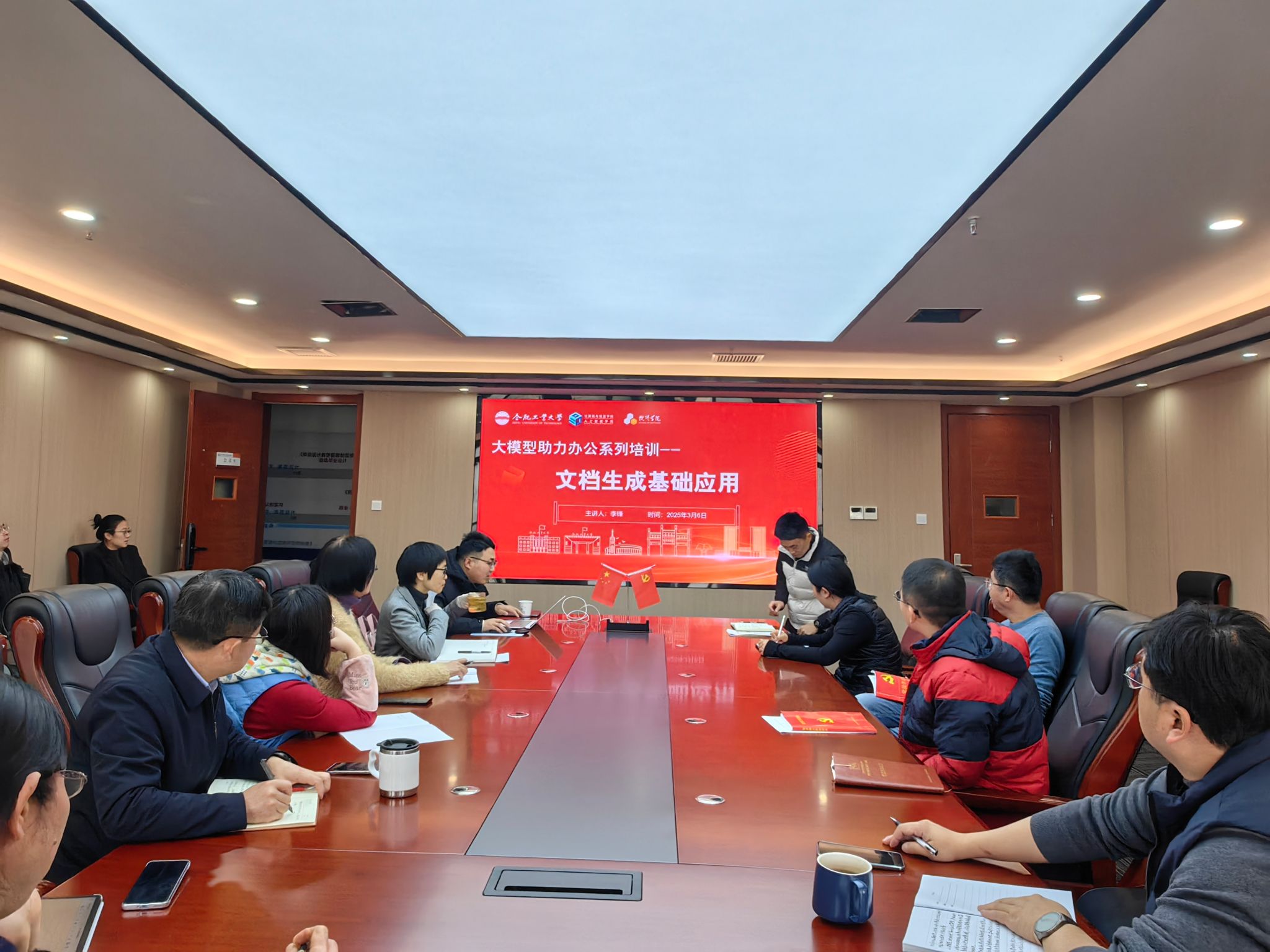 为切实提升学院行政办公效率,助力行政老师熟练掌握智能化办公技能,3月6日上午,学院在科教楼A1106 会议室举办“大模型助力办公:文档生成基础应用”专题培训。此次培训特别邀请学院李锋老师担任主讲,学院正处级组织员何庆领、党委副书记兼纪委书记张海林、副院长王辉及全体机关老师共同参与,现场学习氛围热烈。