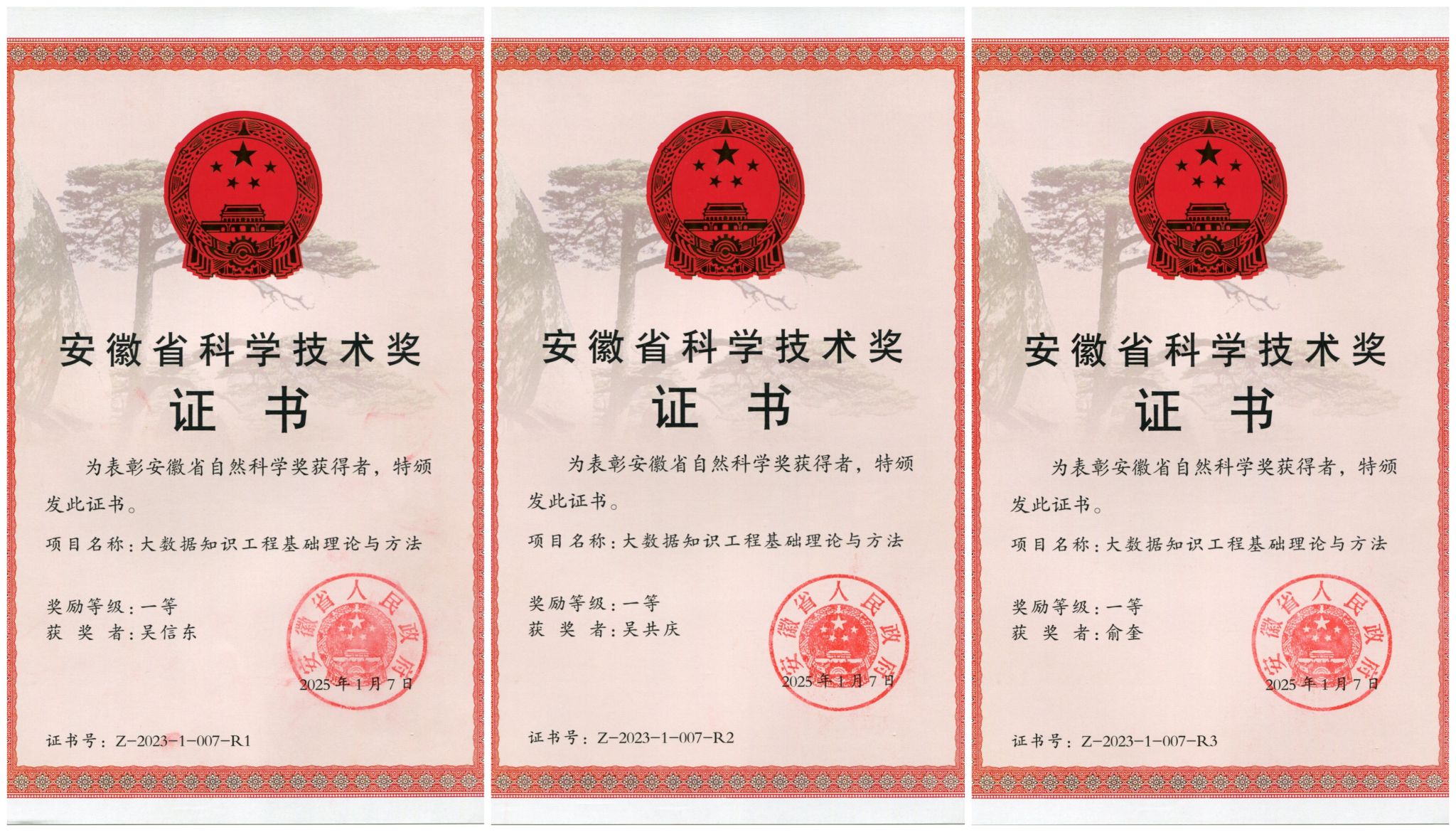 365官网吴信东教授、吴共庆教授与俞奎教授申报的项目 “大数据知识工程基础理论与方法”荣获自然科学奖一等奖,这是365官网在基础研究领域取得的重大进展!