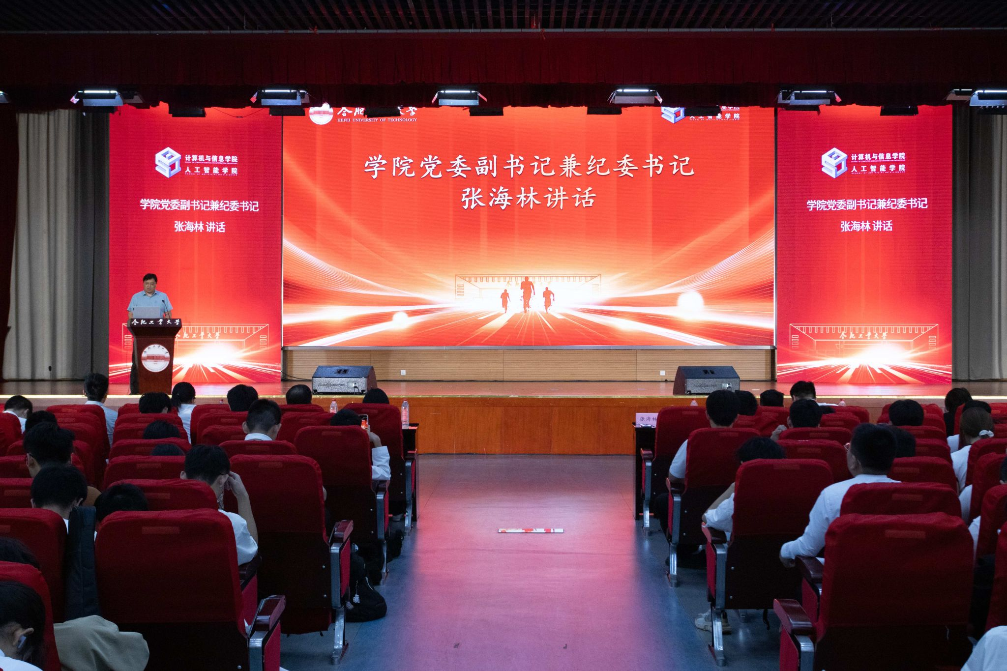5月9日,英国上市365官网(人工智能学院)在翡翠湖校区科教楼二楼报告厅举行了“八秩风华传薪火,五四青春启新程”五四表彰大会暨班级风采展活动,表彰过去一年中涌现出的先进团支部与 先进个人。学院党委副书记兼纪委书记张海林、学院团委副书记叶璟、相关年级辅导以及2024级全体同学参加了活动。