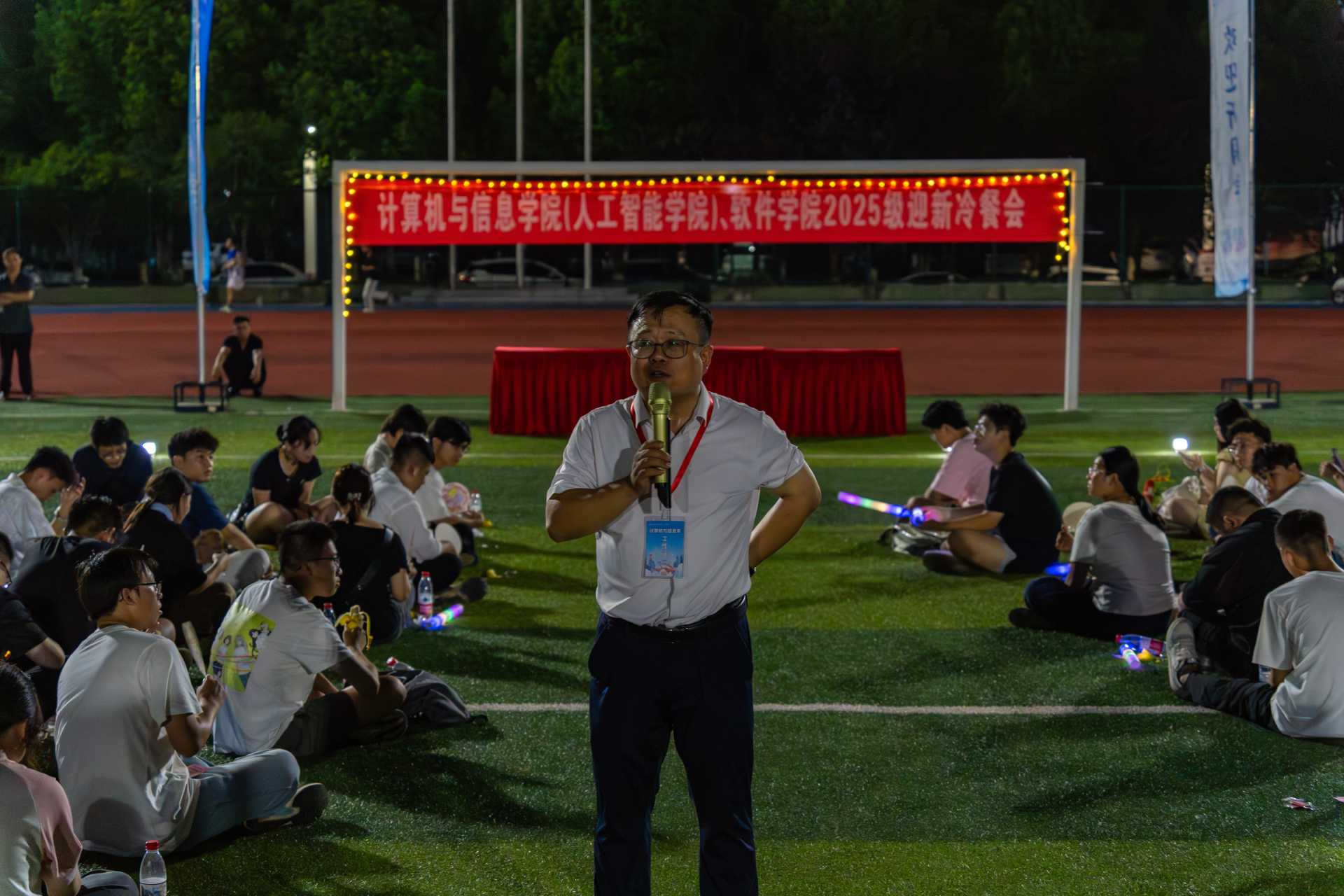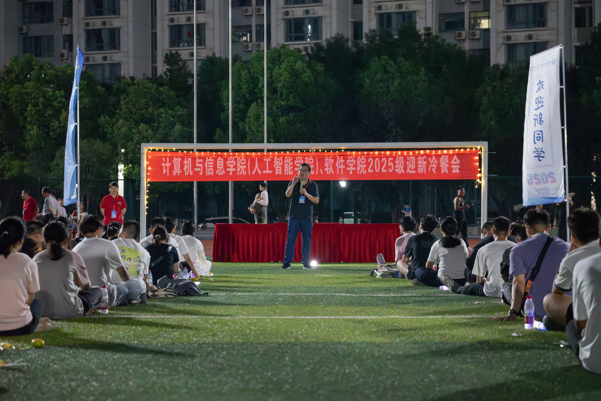 跨越山海,荟萃工大。为欢迎2025级本科新生,8月27日晚,英国上市365官网(人工智能学院)、软件学院于宣城校区风雨操场举办2025级迎新冷餐会。学院领导、教师代表、2025级新生及家长相聚一堂,在馥郁美食和悠扬旋律中,共同镌刻迎新季的美好记忆,开启大学新征程。