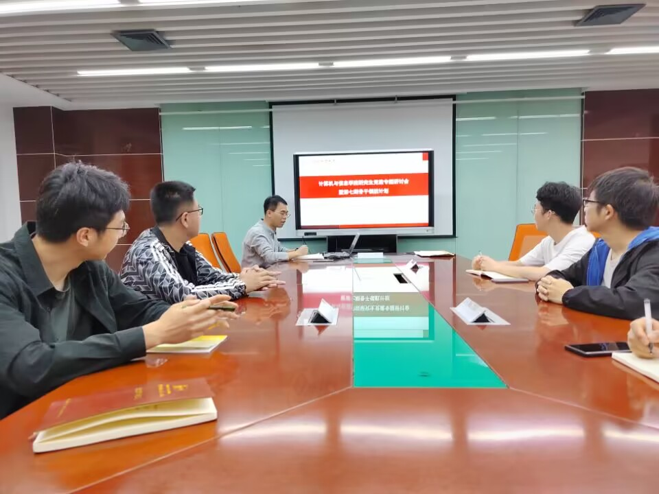 On May 5th, the School of Computer and Information Science held a graduate party building special seminar and the seventh phase of the backbone leadership cultivation program in room A1104 of the Emerald Science and Education Building. Huang Pengfei, the graduate counselor, and all the secretaries of the graduate party branches attended the meeting.