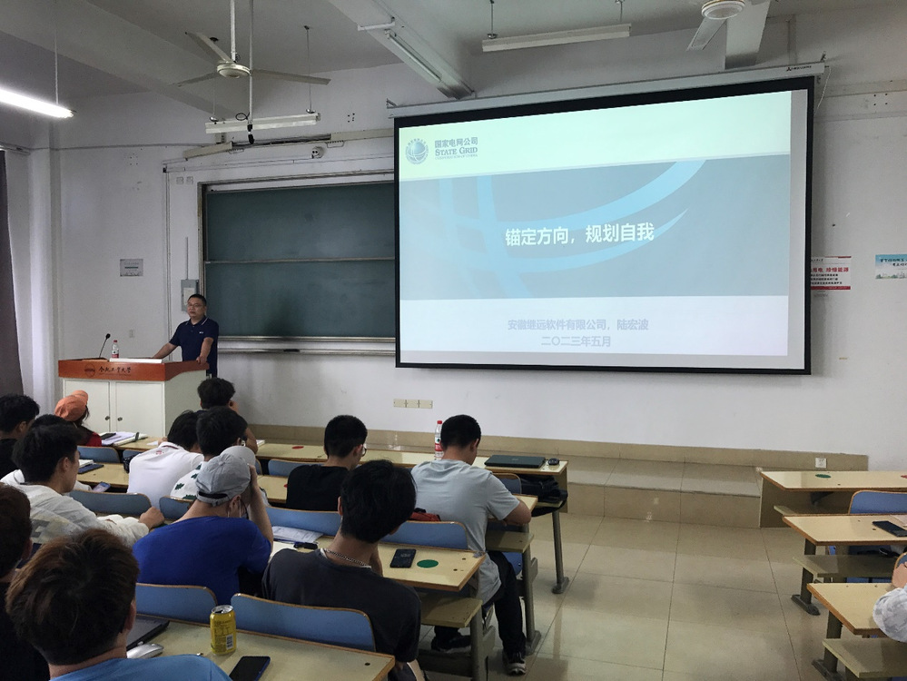 Mr. Lu Hongbo's report was titled "Anchoring Direction, Planning Self". As an alumnus of our school, Mr. Lu Hongbo, with his more than ten years of experience in the power industry, especially using the deployment of transmission networks as an example, revealed the truth that one needs to always maintain a down-to-earth and dedicated work attitude in the workplace, and provided guidance for the students' career planning.