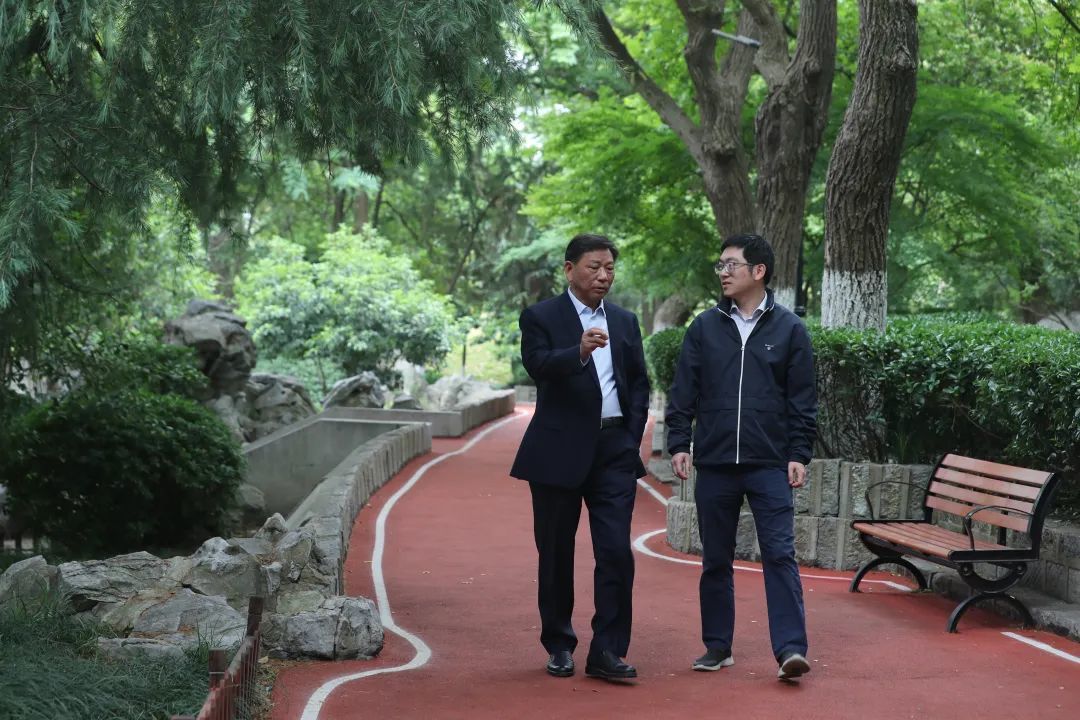 漫步校园,杨善林院士与年轻教师讨论科研攻关项目。