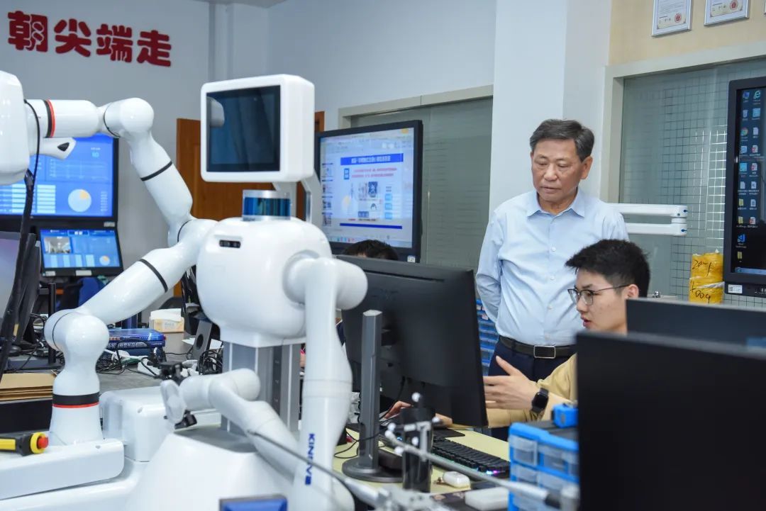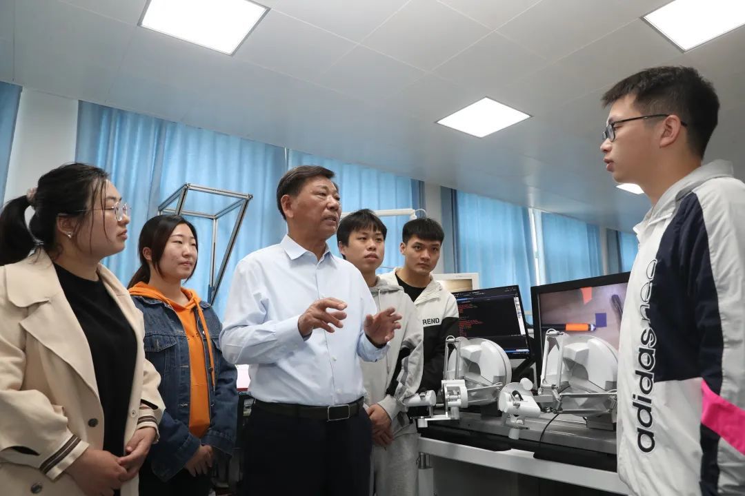 杨善林院士在空天管理实验室与研究生交流。