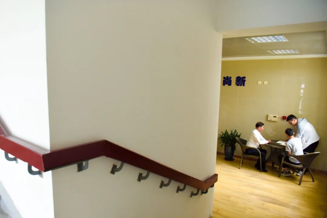 杨善林院士在实验室走廊里,利用休息时间见缝插针耐心解答学生的问题。